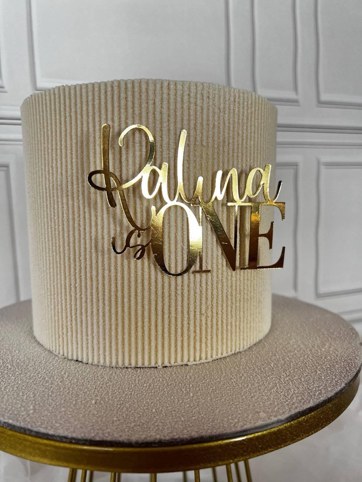 Feiere den ersten Geburtstag mit einem ganz besonderen Highlight: unserem individuell gestaltbaren Cake Topper. Der Schriftzug „is ONE“ bleibt immer gleich, nur der Name deines Kindes wird nach Wunsch angepasst. So erhält jede Torte einen persönlichen und edlen Akzent.